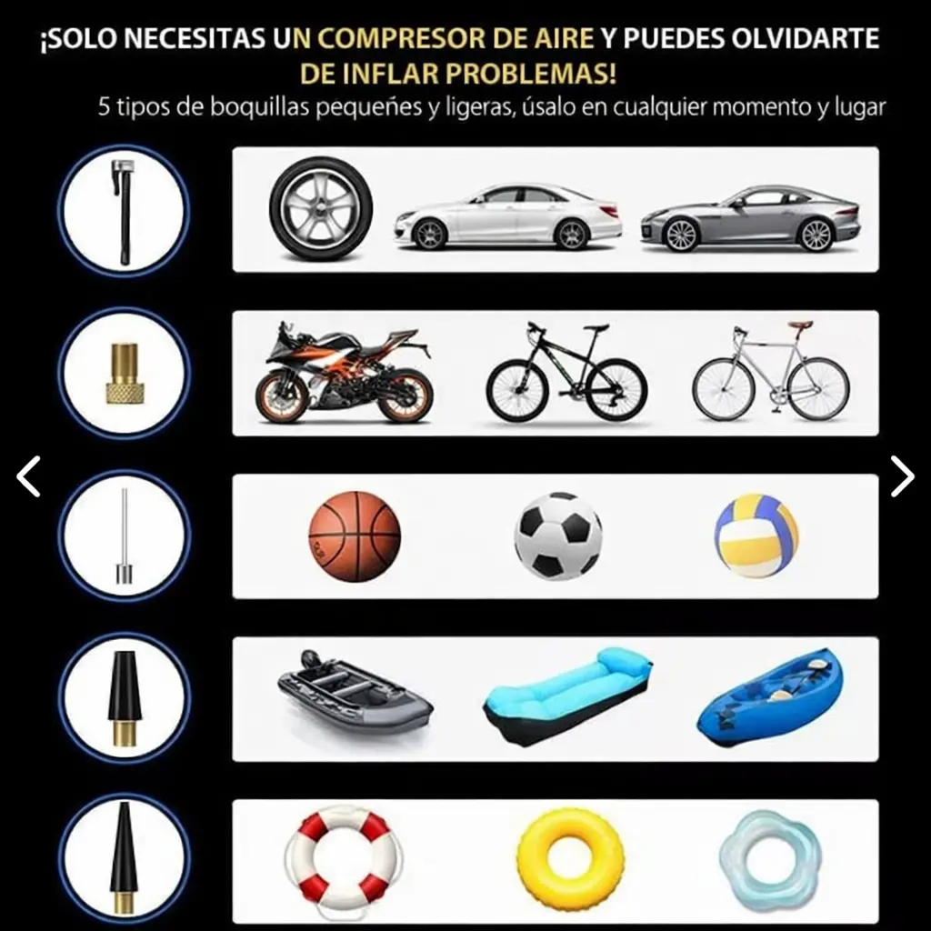 Presión máxima de 150 PSI: Infla neumáticos de autos, motos o bicicletas con potencia profesional.