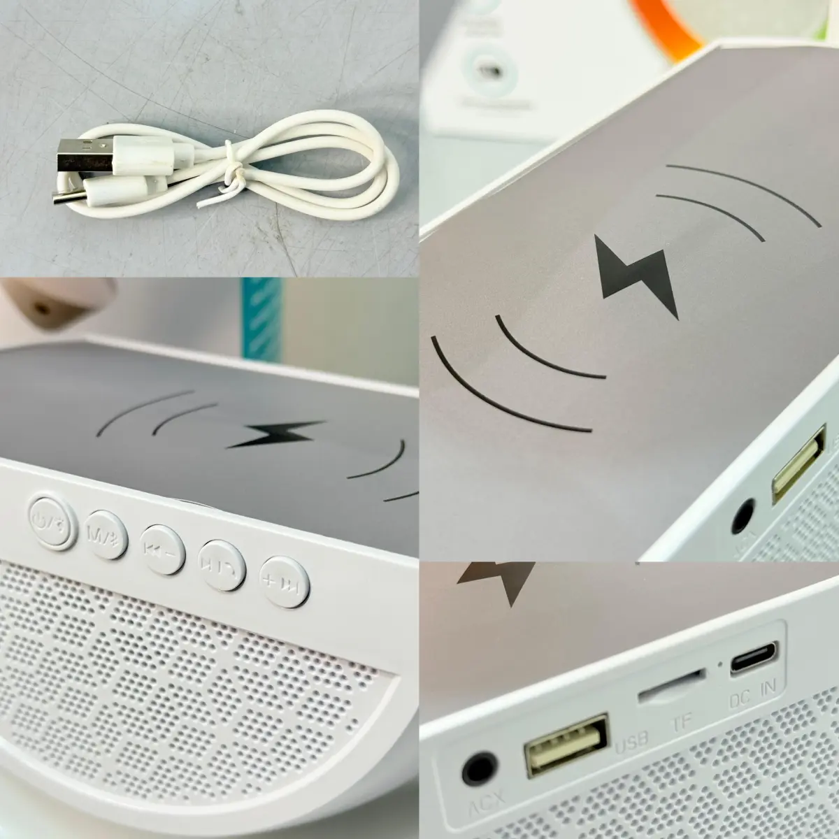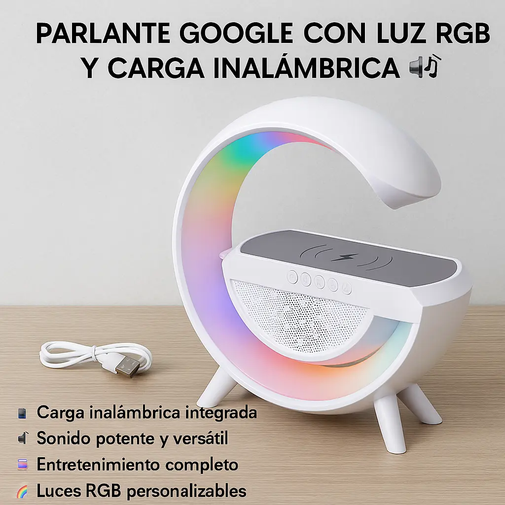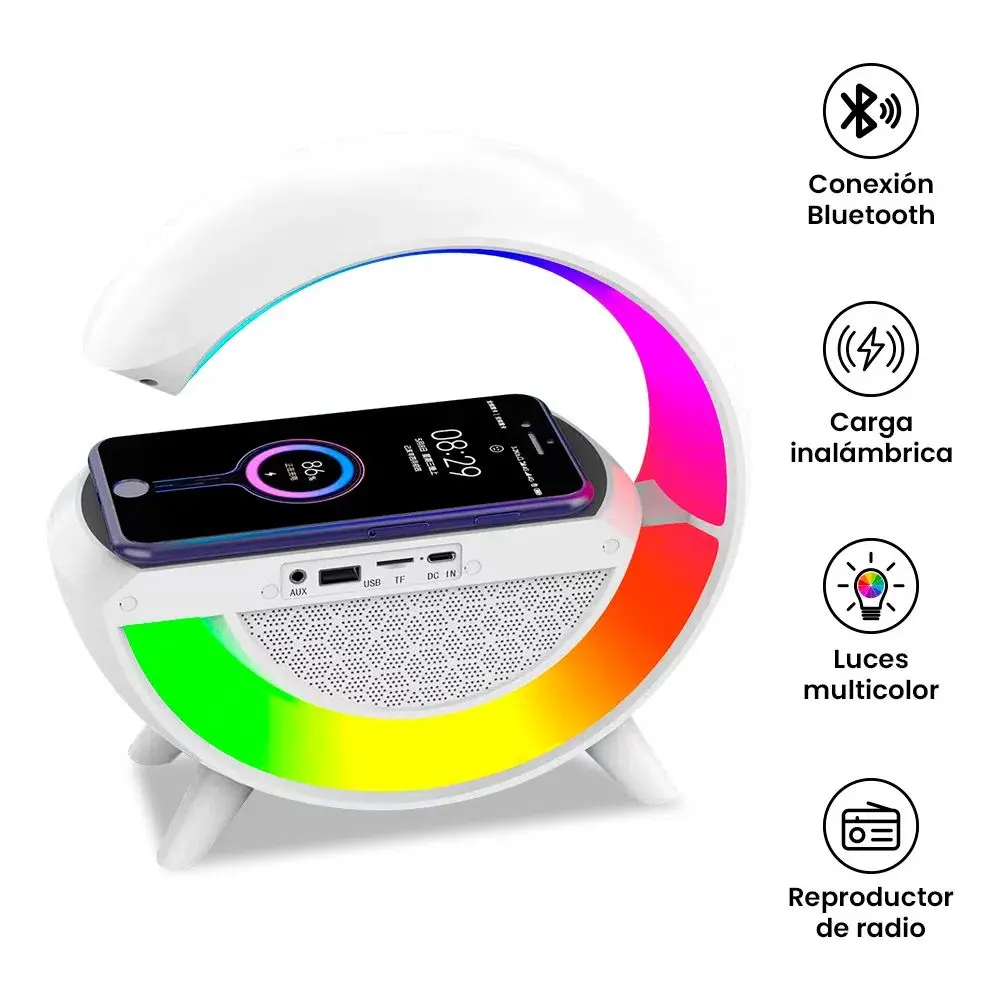 Ideal para hogar, oficina o reuniones con amigos. Combina música, iluminación y carga en un solo dispositivo.